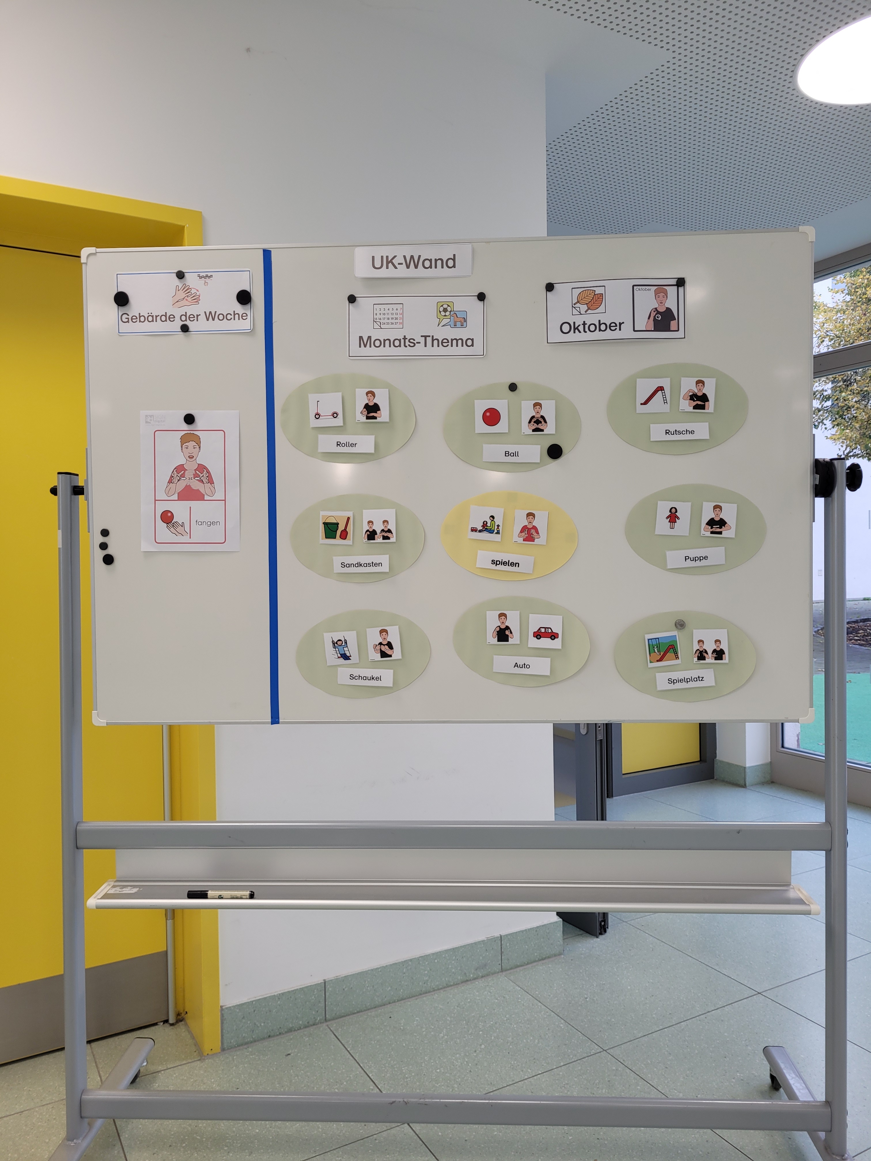 Auf der Wand findet man auch die Gebärde der Woche.