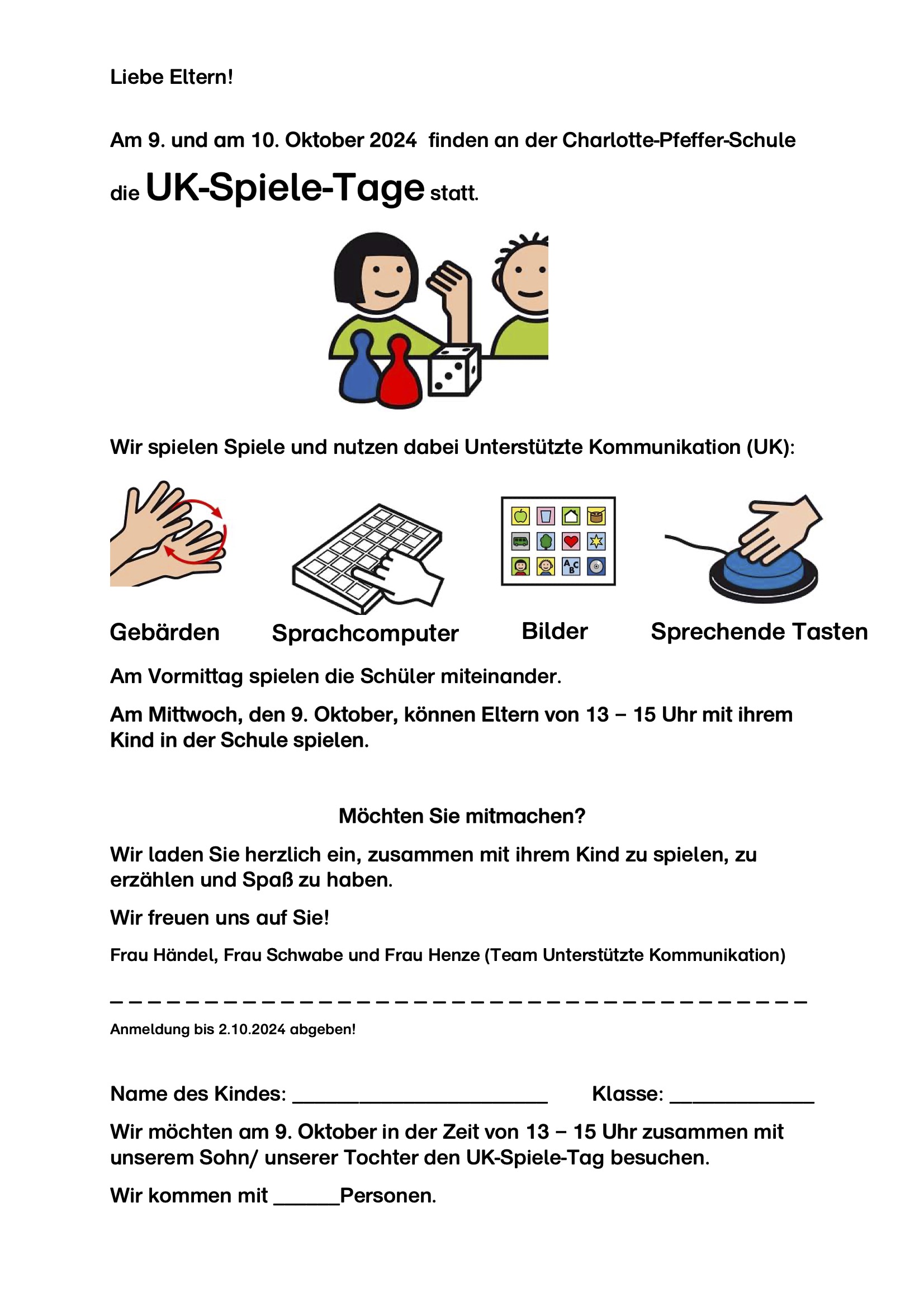 Im Aktionsmonat Unterstütze Kommunikation finden am 9. und 10. Oktober an der CPS wieder die beliebten UK-Spiele-Tage statt