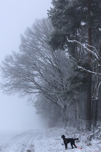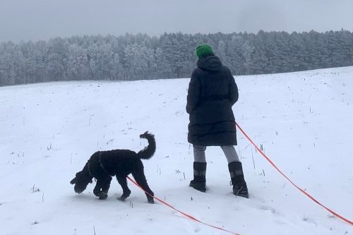 Der Hund läuft im Schulgebäude immer an der Leine.