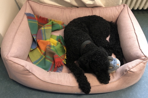 In Frau Wagners Büro hat er seinen Ruheplatz. Hier