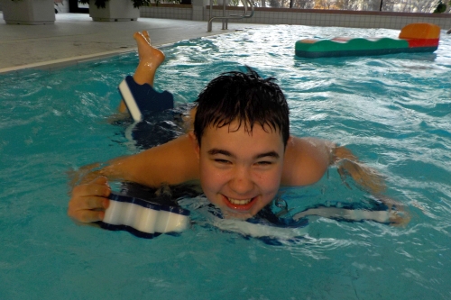 Auch die Bewegung im öffentlichen Raum und die Körperpflege werden im Schwimmunterricht „nebenbei“ gefördert – wichtige Bereiche gerade für unsere jugendlichen Schüler*innen.